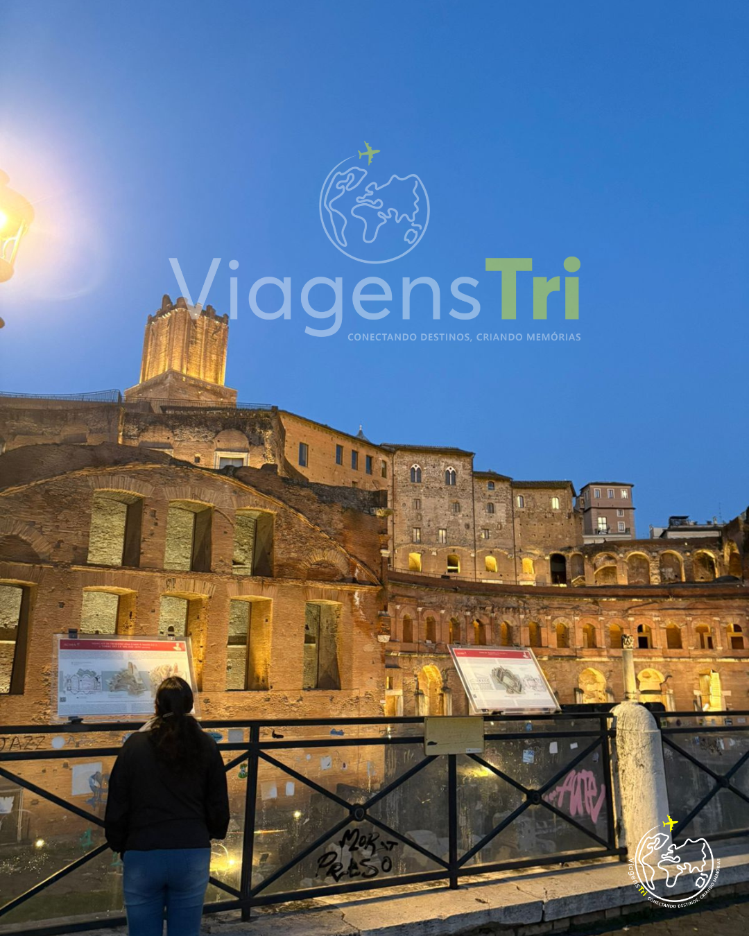 Você vai conhecer símbolos que marcaram a humanidade: Coliseu (externo), Fóruns Imperiais, Arco de Constantino, Circo Máximo, Termas de Caracala, Basílica de Santa Maria Maior, Pirâmide Céstia e Castelo de Santo Ângelo.