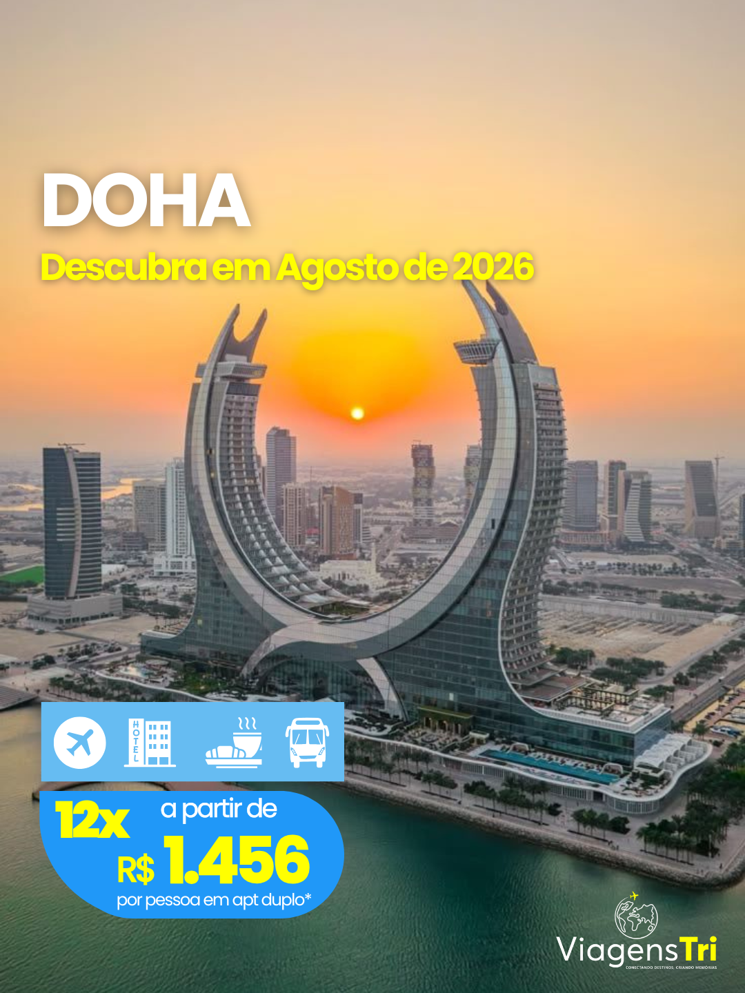 Outras datas e aeroportos sob consulta.Descubra o contraste entre tradição e modernidade no coração do Golfo Pérsico, explorando os ícones arquitetônicos de Doha e vivendo a emoção de um safári pelas dunas do deserto, com a curadoria da Viagens Tri.