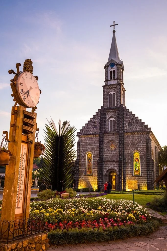 Seguimos para Nova Petrópolis, conhecida como o “Jardim da Serra Gaúcha”. Visitaremos o Parque Aldeia do Imigrante (opcional, ingresso não incluso), onde você poderá conhecer uma Aldeia Bávara com casas típicas e lojas de produtos artesanais locais.Seguimos para a Praça da República, carinhosamente chamada de Praça das Flores, sempre florida, e visitamos o Labirinto Verde, uma área de plantas exuberantes que encanta pela beleza natural.